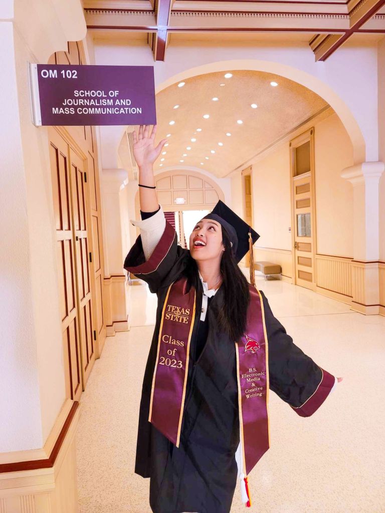 Aquino earned her bachelor’s degree from Texas State University in mass communication with a science concentration in electronic media and a minor in creative writing.